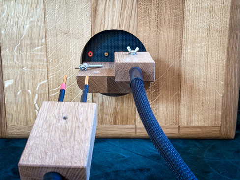 Der Anschluss der Kabel am Lautsprecher mit Flügelschraube sorgt für den nötigen Halt.