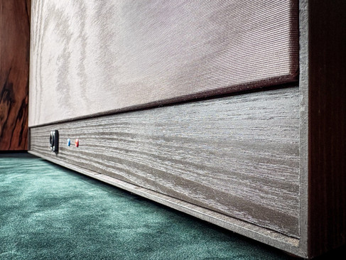 Das nach hinten offene Gehäuse ist mit einem wunderschönen Dedar-Bespannstoff versehen. Auch hier wurde wieder viel Wert auf die Details gelegt.