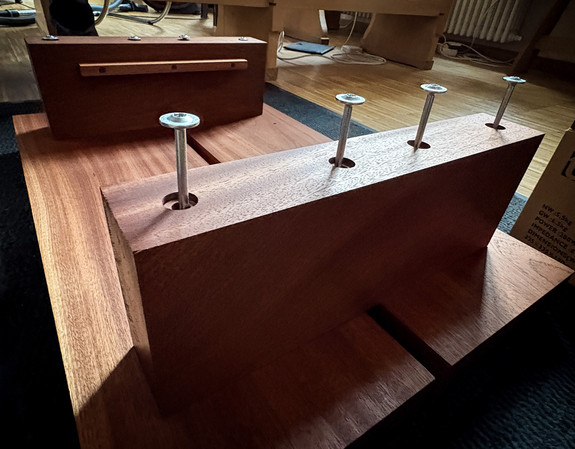 Ein Stück weit kam die Idee auch aus dem Unterbau der Makako, welcher beim Original von DeVore angeblich von einem ZEN-Meister proportioniert wurde. Und nicht zuletzt meine Vorliebe für massives Holz und zu kubistischer Gestaltung, haben zu der Idee dieses ZEN-Racks geführt.